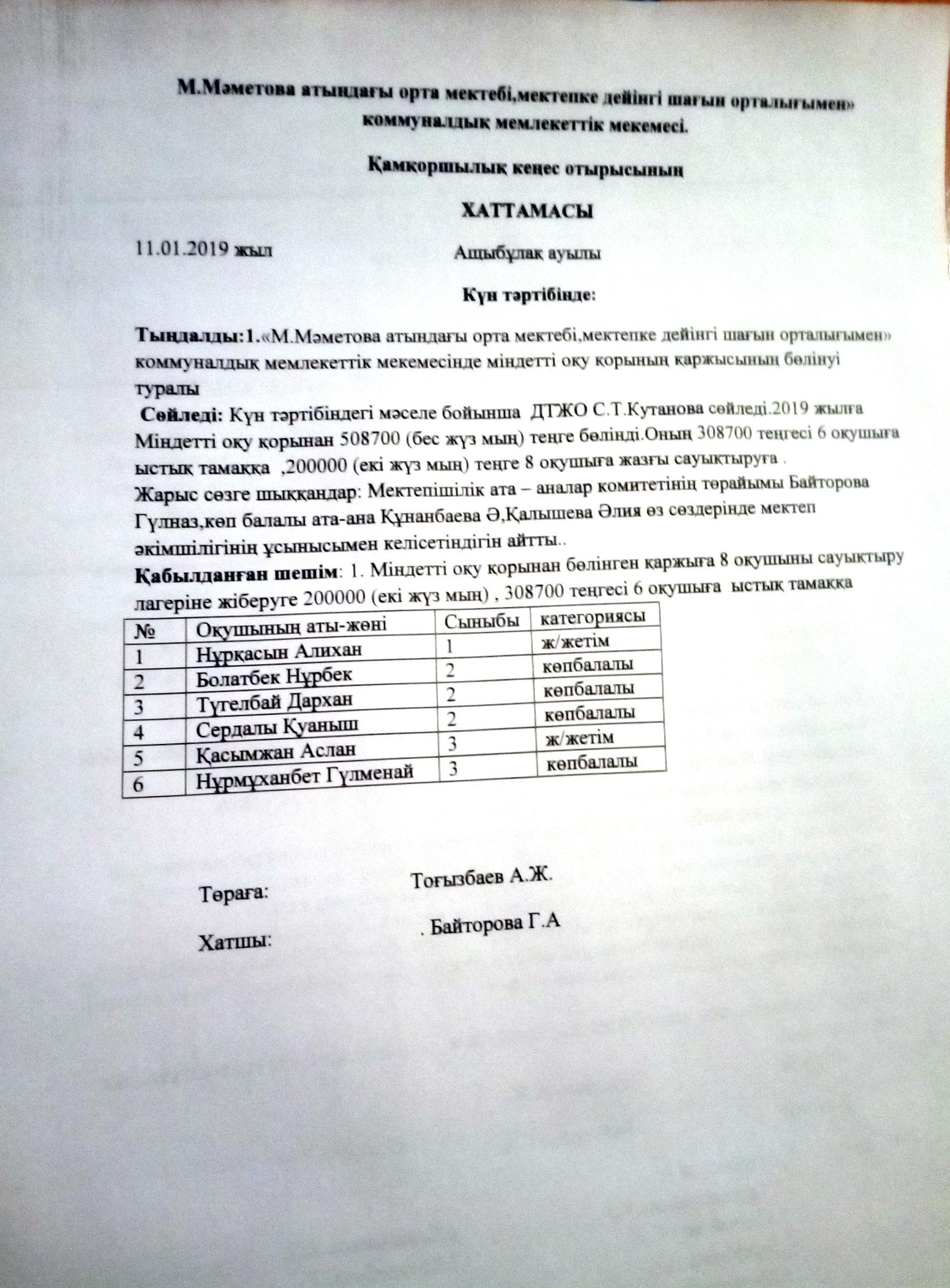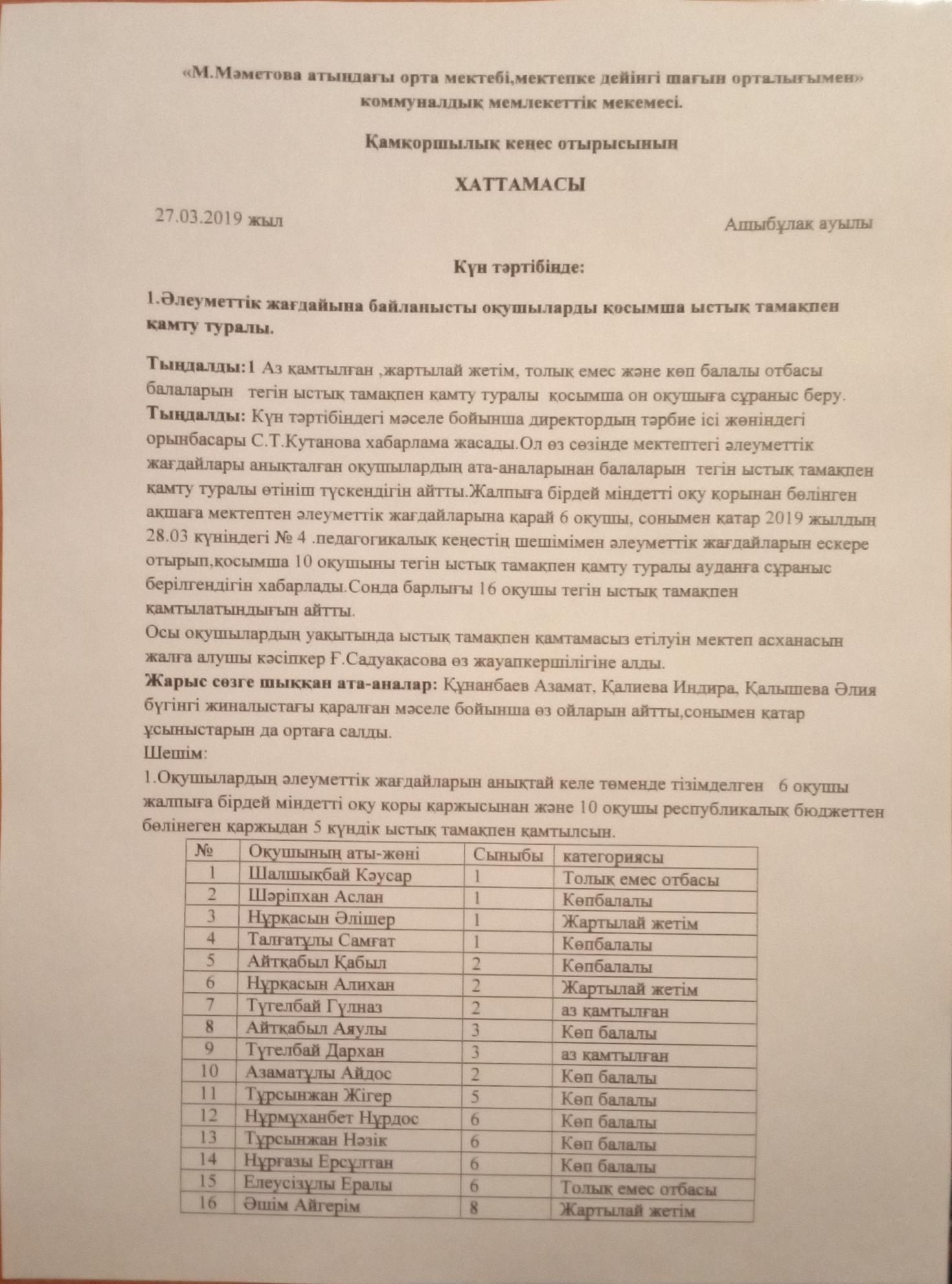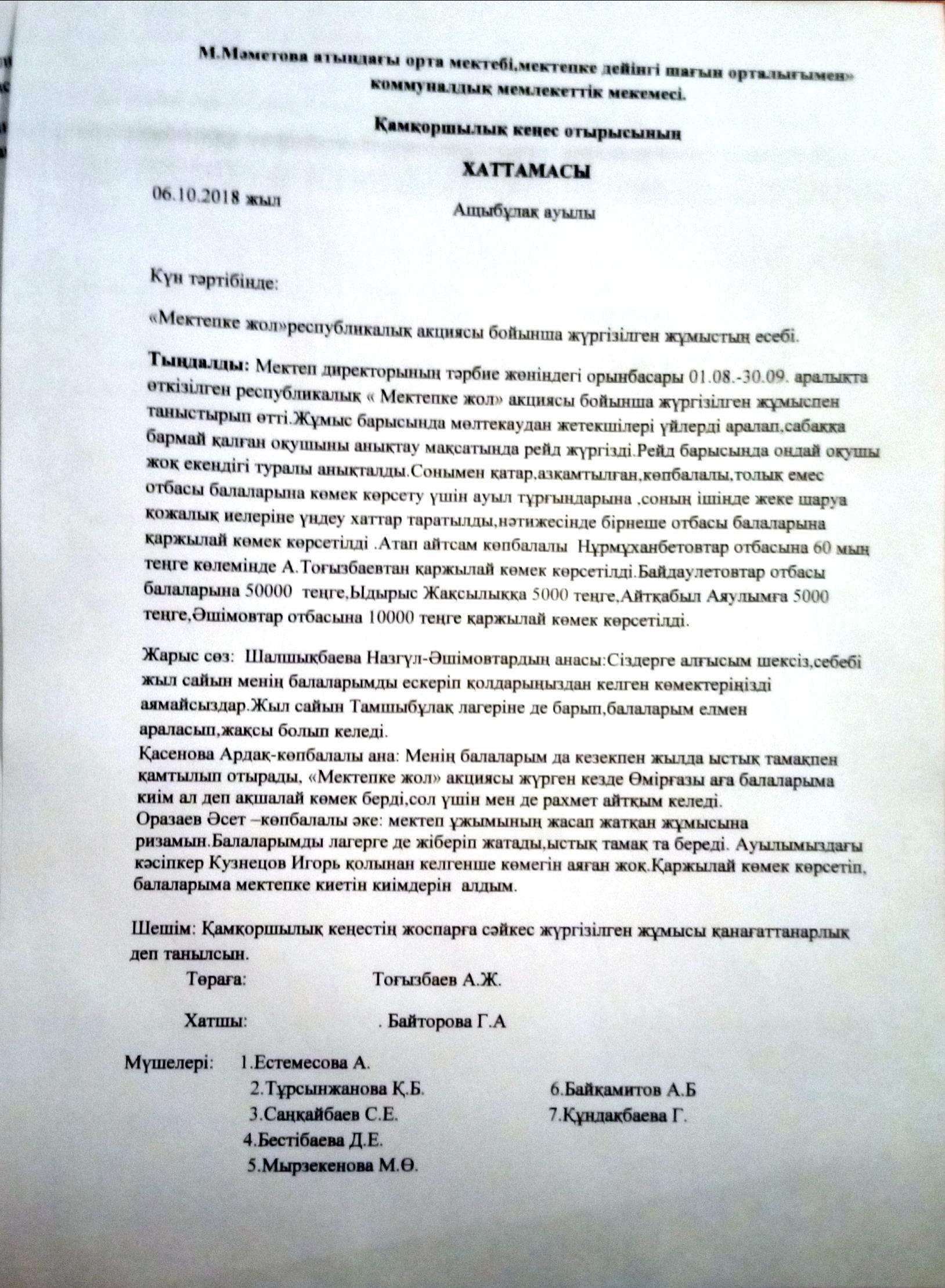 1 » "Мәншүк Маметова атындағы орта мектебі, мектепке дейінгі шағын орталығымен" коммуналдық мемлекеттік мекемесі