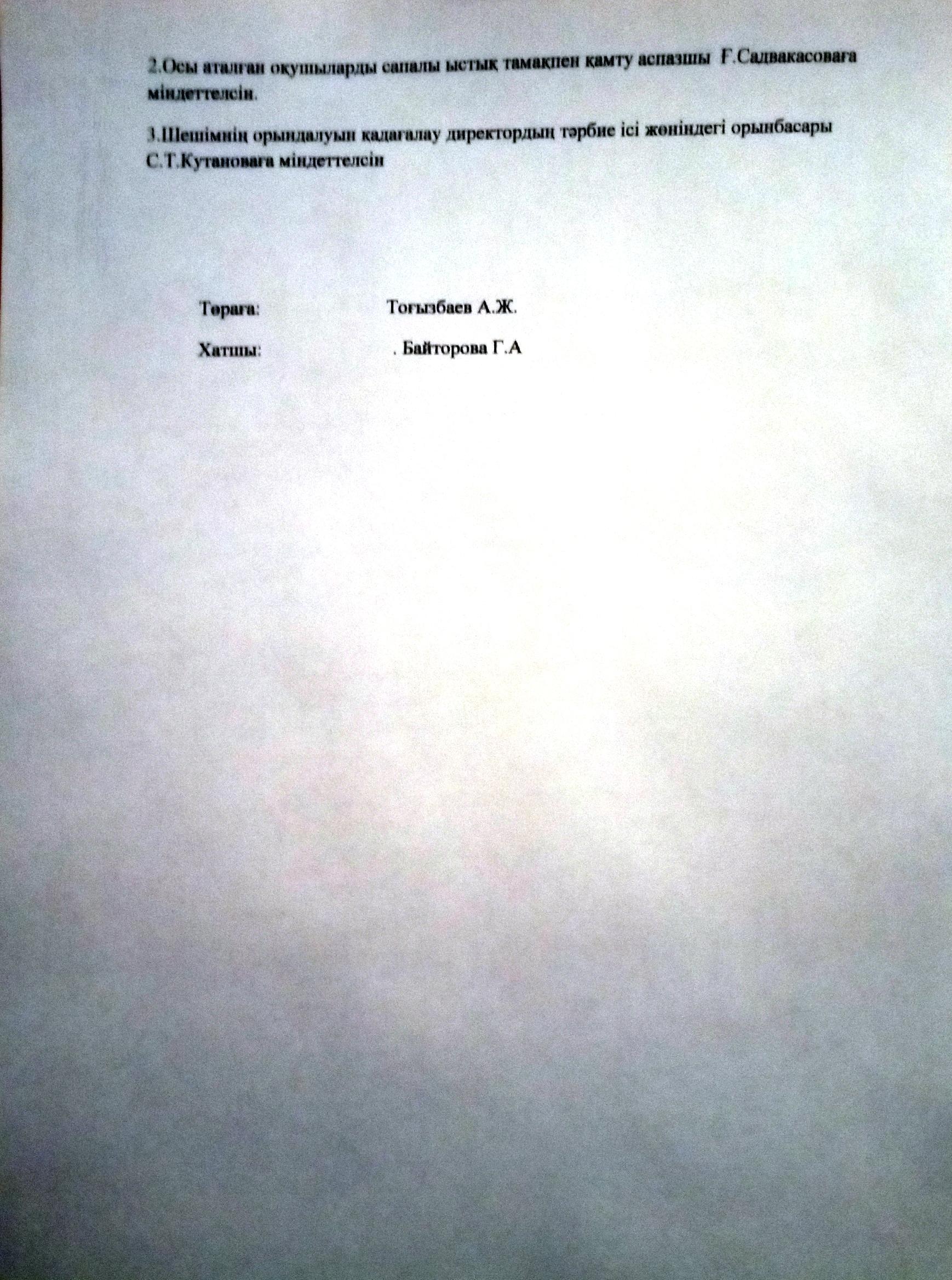 Қабылдау бөлімі :